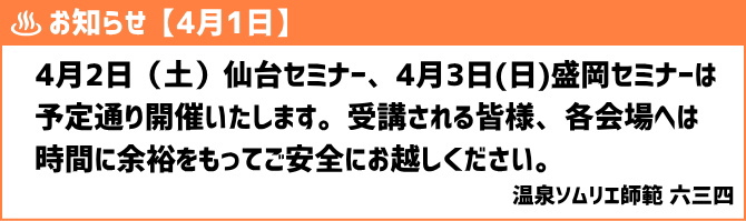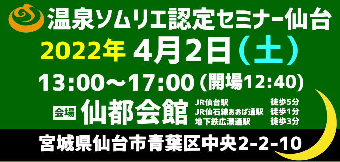 【件名】温泉ソムリエ認定セミナー仙台(キャンセル待ち)