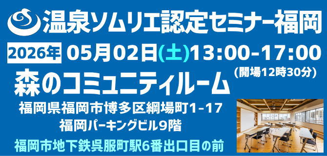 【件名】温泉ソムリエセミナー福岡(2026年5月2日)